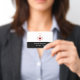 Budget friendly editable health and medical theme employee name badge designed with a heart and cross emblem and text you can customise online with your business name and staff member template. Available in bulk and one off printing as you need them.