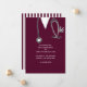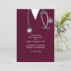 Unique medical school graduation announcement for doctor grad featuring maroon hospital scrubs and funny Swiss Army knife.