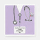Unique doctor party napkins for medical school graduation grad featuring lavender hospital scrubs, stethoscope and funny Swiss Army knife. Edit text to add doctor's name.