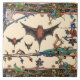 MEDIEVAL BESTIARY,FLYING BATS FOREST ANIMALS Cream Tile