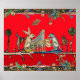 MEDIEVAL BESTIARY MAKING MUSIC,Rabbit,Dog ,Red Poster