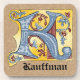 Medieval Blue and Red Ivy Illuminated Letter K Coaster