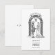 Celebrate your union with this enchanting medieval-inspired save the date card, featuring a striking black and white illustration of a knight and his bride standing beneath an ornate gothic archway. This design evokes a sense of timeless romance and noble heritage, perfect for couples planning a wedding with a fantasy or historical theme. The intricate details of the armor and the bride's elegant gown, combined with the stylized arch, create a visually captivating piece that will set the tone for your special day. Announce your upcoming nuptials with a touch of old-world charm and a storybook feel.
