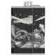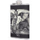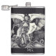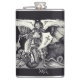 Knight and dragon illustration in black and white vintage image. A knight with wings, holding a shield and sword battles a dragon. Personalize with your name or message in white uppercase font.