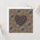 A large black heart shape stands out against a vibrant, intricate kaleidoscope pattern filled with multiple colours. The swirling design consists of repeating geometric motifs, creating a sense of depth and complexity. The heart blends subtly into the lively background, adding an intriguing contrast.