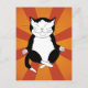 A tuxedo kitty in pencil sits meditating in a cross-legged pose on this postcard. The black and white cat’s paw pads and nose leather are pink. His expression is one of total peace and contentment. Shining from behind him is a background of alternating orange and yellow gradient rays. Perfect for any practitioner of yoga who is also a cat lover. From my original digitally created image.