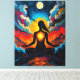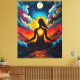 This bold artwork portrays the abstract silhouette of a woman in lotus pose, radiating golden light from her chest beneath a glowing moon. Intense skies and dramatic weather form the backdrop, painted with textured strokes and vibrant colours to heighten the spiritual atmosphere. A powerful fusion of calm meditation and cosmic energy, this piece makes a striking focal point for yoga spaces, meditation rooms, or any home that embraces balance and mindfulness.