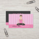 A sweet, girly and trendy business card that comes with an illustration of a female yoga instructor dressed in pink tank top and black yoga pants with her tied in a bun. She is sitting in a calming meditation yoga position. Personalise your business details in black and white against the pink background. Great for freelance ladies who is a yoga or pilates instructor, in the meditation, health and fitness industry.