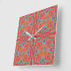 Mediterranean Azulejo Coral Floral Square Wall Clock