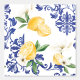 Mediterranean Blue Antique Floral & Lemon Pattern Wallpaper