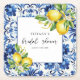Mediterranean Blue Tiles Lemons Bridal Shower Square Paper Coaster