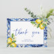 Mediterranean Blue Tiles Lemons Bridal Shower Thank You Card
