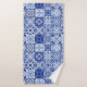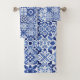 Mediterranean Blue White Tile Pattern Watercolor Bath Towel Set