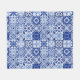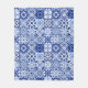 Mediterranean Blue White Tile Pattern Watercolor Fleece Blanket