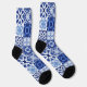 Mediterranean Blue White Tile Pattern Watercolor Socks