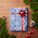 Mediterranean Blue White Tile Pattern Watercolor Wrapping Paper