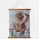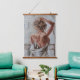 The polyester fabric displayed many wrinkles and several sharp creases throughout. At the bottom of the tapestry, I noticed a bulge in the fabric because it was not pulled tight enough before being connected to the wooden boards. It took me over an hour to spay water on the tapestry before putting it on an ironing board where I used a warm iron over a polyester cloth to remove the wrinkles and creases in the material. I was able to get out the wrinkles and creases that made that tapestry look as beautiful as its picture.