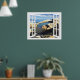 Beautiful Mediterranean rocky sea view, faux window scene, for a windowless office. Very realistic landscape optical illusion poster that would look great on an office or study wall.