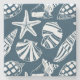 Mediterranean Coastal Seashell Toile Aegean Blue Stone Coaster