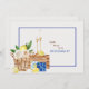 Mediterranean proposal card. "Will you be my Bridesmaid? Back with Bride and groom name. Date. Message. Baskets, tiles, candles, lemons.