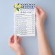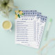 Guests answer questions about the bride, after fill in all their answers, the Bride answers all questions and guests will check on the right boxes which one they guessed correctly and write the total of correct answers at the bottom line. The person with the most correct answers wins.