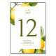 Mediterranean Italy Greece Lemon Vibrant Wedding Table Number