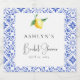 Impress your guests with a sun-soaked celebration with our Mediterranean Tiles Lemon Bridal Shower Champagne Bottle Label. This beautifully designed, customisable template perfectly captures the essence of a summer bridal shower, combining the timeless elegance of Mediterranean tiles with the fresh, zesty charm of lemons. The intricate blue and white tile patterns paired with vibrant lemon accents create a stunning visual that sets the tone for a joyous and sophisticated event. Perfect addition to bridal shower favours/gifts. Be sure to explore the rest of the collection to create a cohesive bridal shower that will impress your guests!