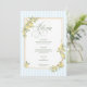 Elevate your place settings with this elegant lemon-themed wedding menu, designed to coordinate beautifully with your citrus-inspired suite. Featuring soft blue-and-white stripes, a delicate watercolor lemon-and-greenery border, and graceful script typography, this menu brings a fresh Mediterranean charm to each table while showcasing your meal in refined style. Perfect for coastal, garden, Italian-inspired, and summer weddings, it adds a polished, cohesive detail that enhances your reception décor from the first course to the last.