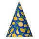 Colourful citrus fruit, lemon pattern paper party hats. Background colour can be changed in the design tool. Please contact me for help with customisation and special requests. © Zoe Chapman Design
