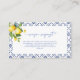 Mediterranean Lemon Recipe Request Bridal Shower Enclosure Card