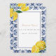 Personalise this Amalfi Coast mediterranean lemon tiles bachelorette weekend card with your own wordings easily and quickly, simply press the customise it button to further re-arrange and format the style and placement of the text.
