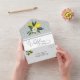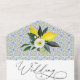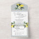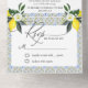 Mediterranean Lemon Themed invitation watercolor blue tiles, beautiful yellow lemons and white flowers. Perfect for a destination wedding or an outdoor elegant summer wedding All In One Invitation with RSVP Card