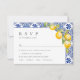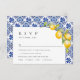 Mediterranean Lemons Blue Tiles Wedding RSVP Card