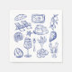 The best of the Mediterranean life - sea and food- a blue outline design, perfect for summer.
