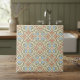 This Mediterranean tile design features a colorful arrangement of swirling scrollwork and stylized floral motifs in warm, sun-washed gold, terra cotta, blue and green tones, creating a gently weathered, hand-painted look. Its harmonious symmetry and classic Mediterranean character make it ideal for adding subtle sophistication to coastal, rustic, or Old World-inspired interiors. Search ID1195 to see other products in this unique design set. Note: design may contain generative content