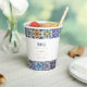 A modern yet rustic Mediterranean Portuguese tiles pattern wedding design. A colourful Mediterranean themed design that uses different vintage tile designs to create an elegant summer wedding design. A charming Portuguese, Italian and Spanish influenced Mediterranean tiles design using classy script typography. An elegant Portuguese tiles themed wedding paper cup design with modern elements. Matching wedding invitations and other stationery items are also available.