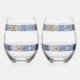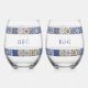 Mediterranean Portuguese Tiles Pattern Wedding Stemless Wine Glass