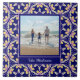 Here's a great personalised decorative addition to your kitchen, bathroom, outside patio, front door area, or anyplace in your home where a Spanish, Mediterranean style look fits right in. The tile pattern in deep indigo blue with repeating floral design makes an eye catching statement on this ceramic tile. Add your favourite personal family, friend, or baby photo together with their name and your have a keepsake that's going to bring you joy as long as it's in your home. If you have a design question or would like to see this design on another product, please feel free to contact me at jschmidtdesignworks@gmail.com.