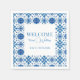Matching elegant Wedding "Welcome" Wedding Napkins for the "Mediterranean summer modern blue mosaic Wedding Stationary Collection". Text is fully customisable.