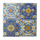 Intricate Mediterranean‑style florals in blue, yellow, green and white with ornate geometric details. A bright, symmetrical tile look inspired by traditional hand‑painted ceramics.