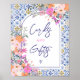 Add a charming touch to your bridal shower, wedding, or special event with this beautifully designed Cards and Gifts sign. Featuring a vibrant Mediterranean tile background with an arch frame, the design is adorned with watercolor florals in shades of pink, orange, and lavender for a romantic touch. The elegant calligraphy script and modern typography make it an eye-catching addition to your gift table, guiding guests with style. Perfect for destination weddings, summer bridal showers, or garden celebrations!