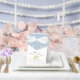 The sign is adorned with a delightful handwritten font that adds a touch of whimsy and personal warmth. The minimalist style ensures that the focus remains on the captivating artwork and the joyous occasion to come. The soft, pastel hues and delicate patterns create an inviting and serene aesthetic that is perfect for welcoming friends and family to this special celebration.