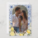 Mediterranean Tiles and Lemon Garland Wedding Invitation Cards with Back Oval Photo.