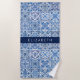 Mediterranean Tiles, Portugese, Azulejo, Your Name Beach Towel