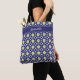 Modern blue and yellow Moroccan floral pattern tote bag. Personalise with your name.