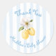 Mediterranean Yellow Lemon Blue stripes Thank You Classic Round Sticker