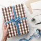 A wrapping paper designed with a brown and white gingham pattern in medium size.
