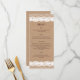 Beautifully illustrated white lace decorates this medium coloured, burlap menu. It is printed on a rack card as a an affordable option.