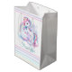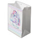 Medium Gift Bag to a magical birthday party with an adorable unicorn with wings in the clouds on a rainbow background.