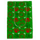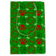 Medium glossy green Christmas gift bag with red and green dog paws and white bones.